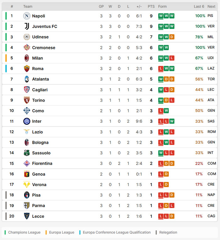 31/08/25 แพ้ โบโลญญ่า 0-1 (เยือน) เซเรีย อา