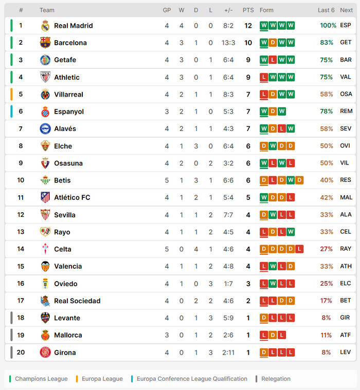 เอสปันญ่อลเปิดซีซั่นได้อย่างมั่นใจเกมในรังถือว่าเหนียวแน่นชนะคู่แข่งอย่างแอตฯ มาดริด และโอซาซูน่า ได้แบบไม่เสียประตู เกมรุกมีตัวเลือกที่หลากหลายทั้งฆาบี ปูอาโด้, กีเก้ การ์เซีย และเปเร มีย่า ที่ฟอร์มร้อนแรงยิงไปแล้ว 2 ลูก ขณะที่แดนกลางมี เอดู เอ็กซ์โปซิโต้ ช่วยคุมเกมแม้จะเสีย ฆาบี เอร์นานเดซ ที่เจ็บไปแต่โดยรวมสภาพทีมยังดูสมบูรณ์