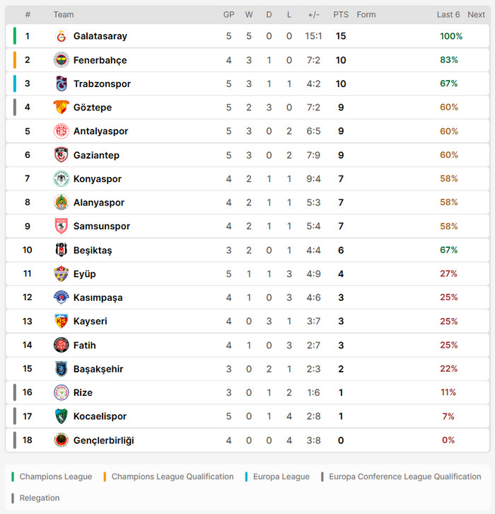 31/08/25 แพ้ กาลาตาซาราย 1-3 (เยือน) ตุรกี ซูเปอร์ ลีก