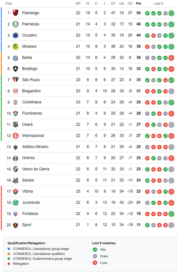 31/08/25 ชนะ เซา เปาโล 1-0 (เหย้า) เซเรีย อา บราซิล