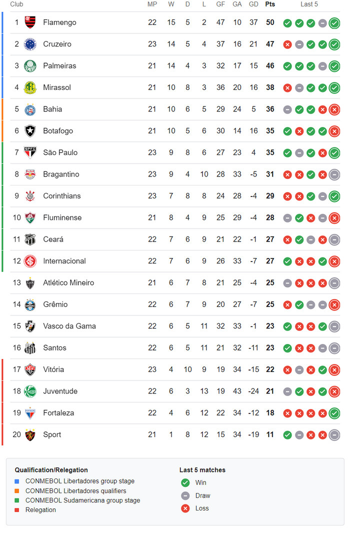 15/09/25 แพ้ เซา เปาโล 0-1 (เยือน) เซเรีย อา บราซิล