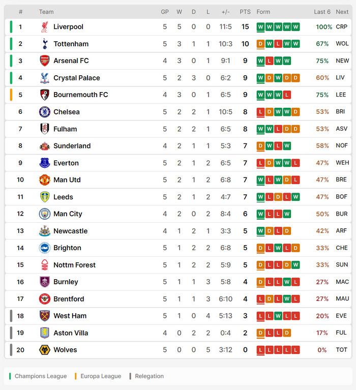 16/08/25 แพ้ ลิเวอร์พูล 2-4 (เยือน) พรีเมียร์ลีก