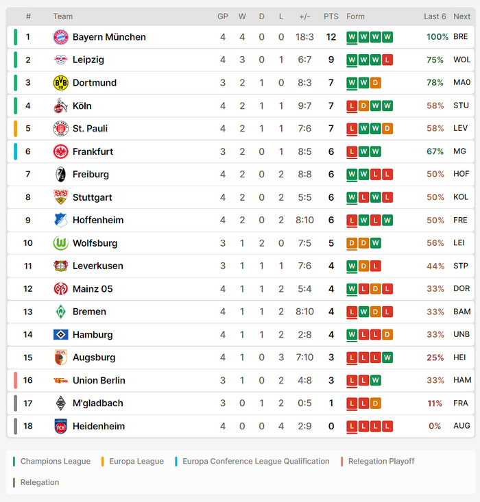30/08/25 แพ้ สตุ๊ตการ์ต 0-1 (เยือน) บุนเดสลีก้า