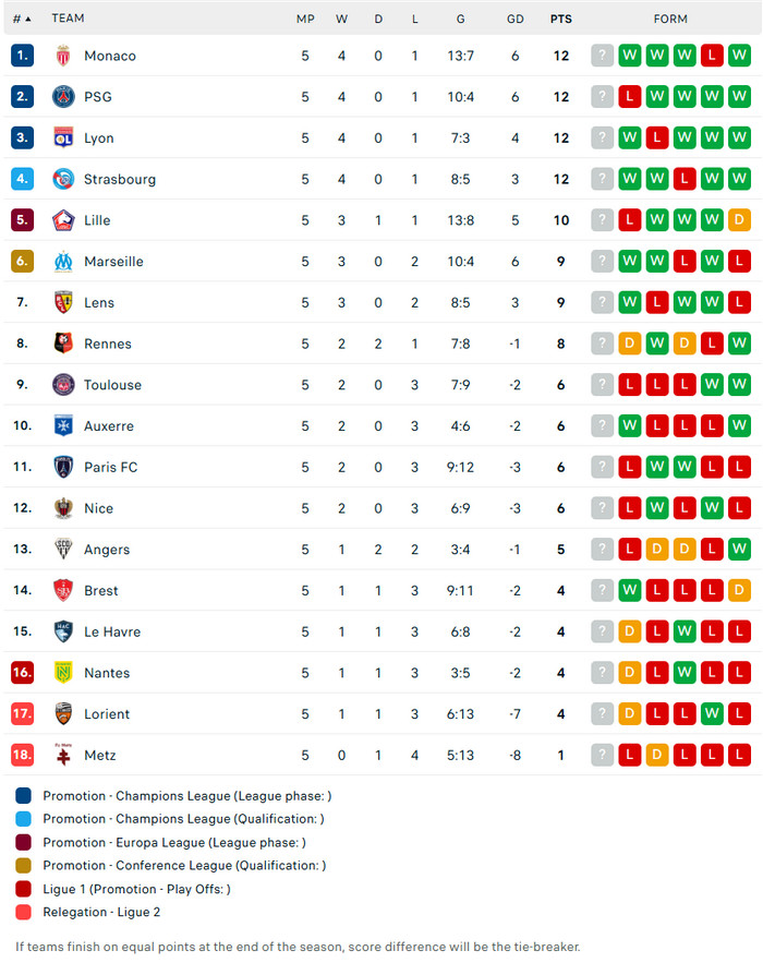 31/08/25 แพ้ โมนาโก 2-3 (เยือน) ลีก เอิง