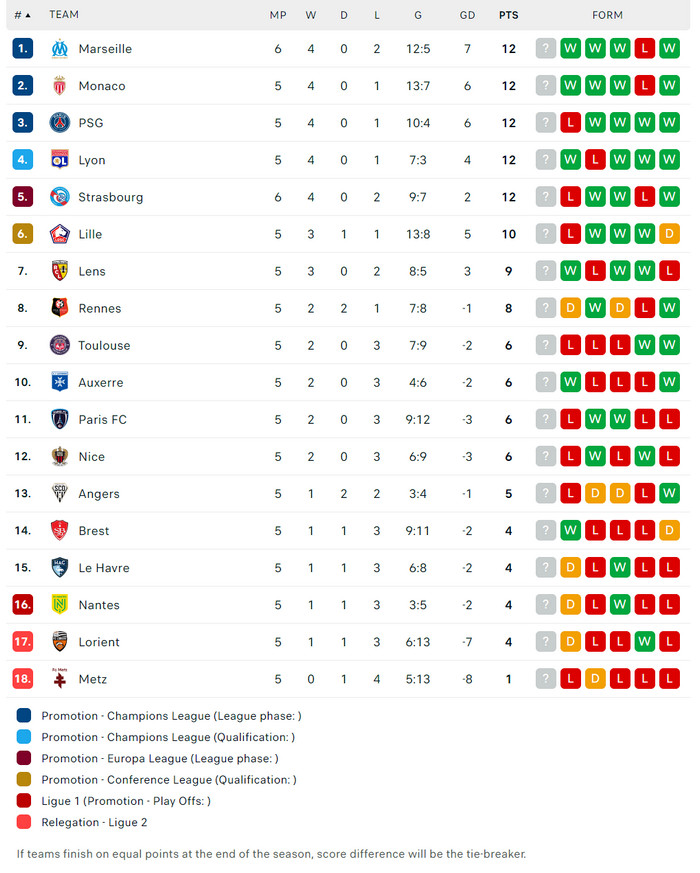 23/09/25 แพ้ มาร์กเซย์ 0-1 (เยือน) ลีก เอิง