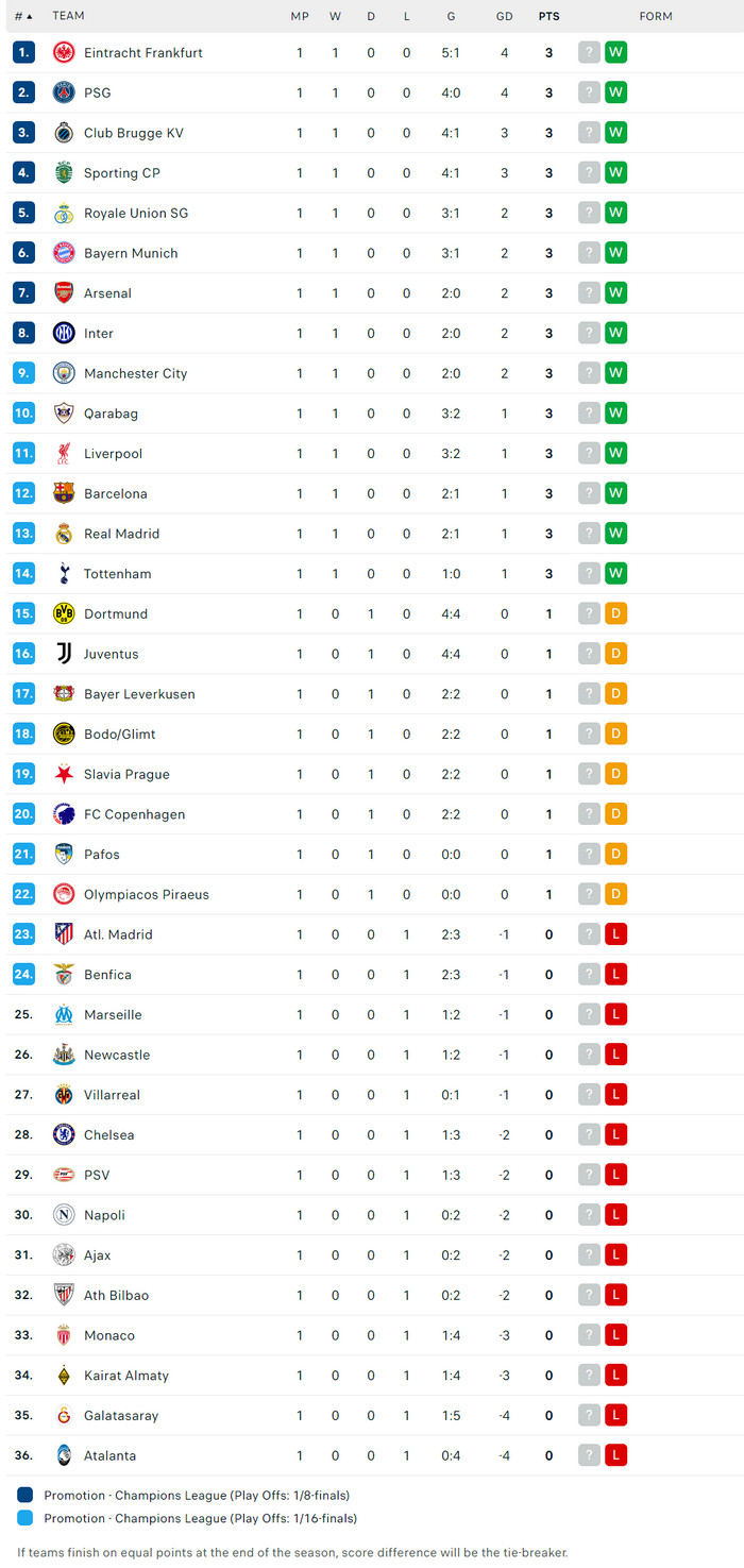 18/09/25 แพ้ ลิเวอร์พูล 2-3 (เยือน) แชมเปี้ยนส์ ลีก