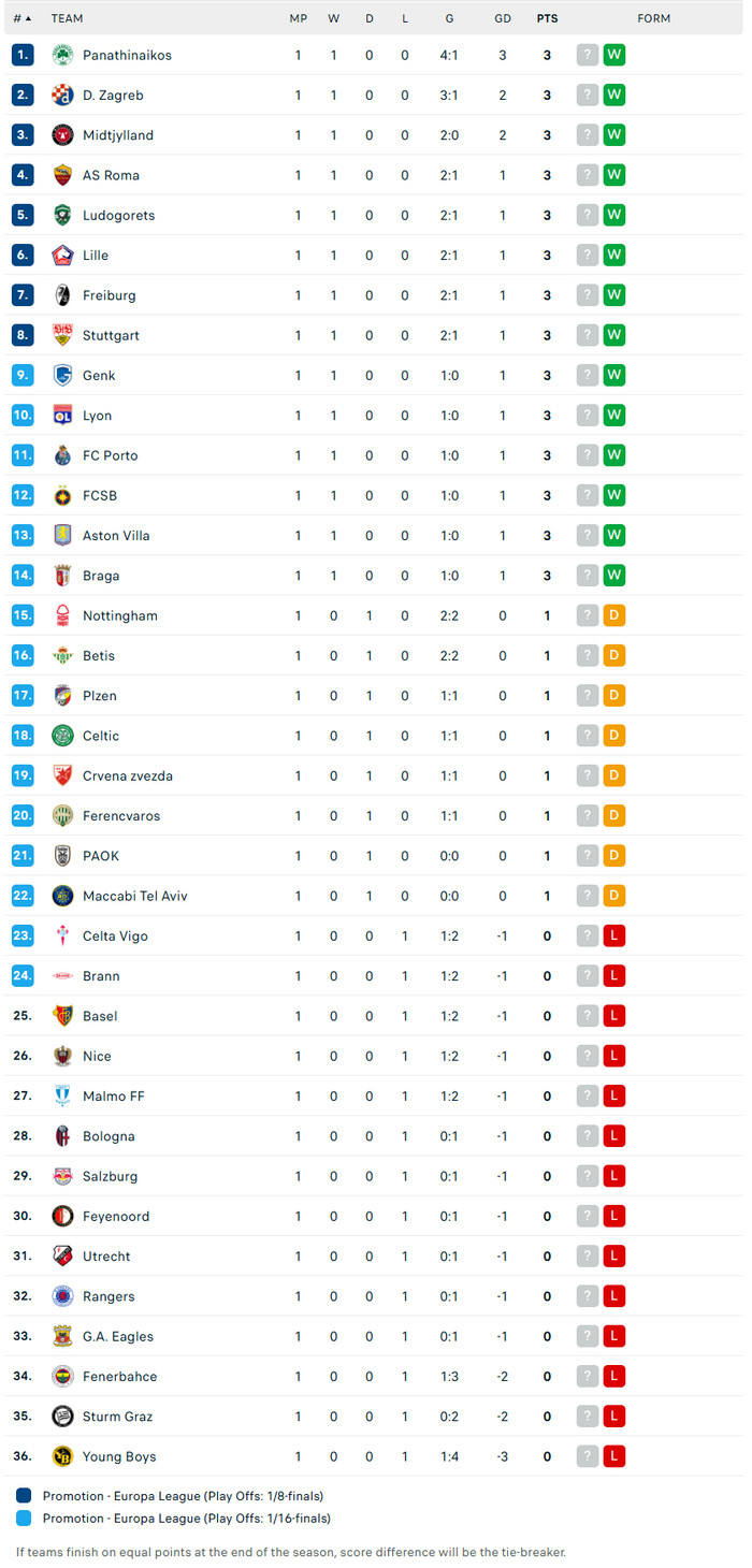 26/09/25 แพ้ สตุ๊ตการ์ท 1-2 (เยือน) ยูโรป้า ลีก