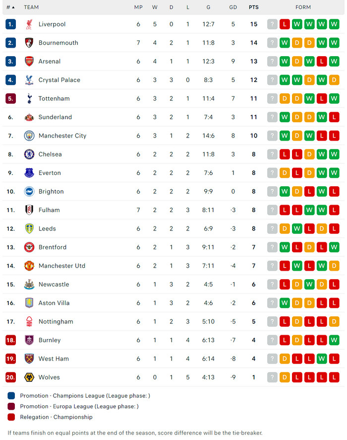 14/09/25 แพ้ สเปอร์ส 0-3 (เหย้า) พรีเมียร์ลีก