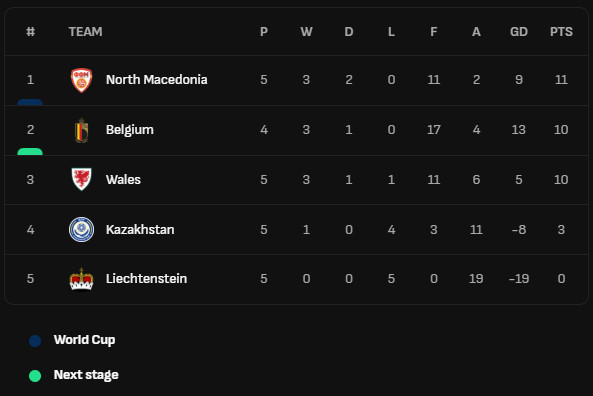 08/09/25 แพ้ เบลเยี่ยม 0-6 (เยือน) คัดบอลโลก 2026