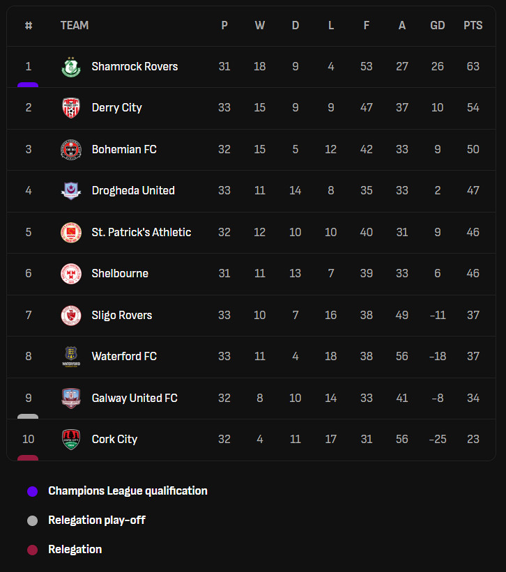 23/09/25 แพ้ ดร็อกเฮด้า 1-2 (เยือน) พรีเมียร์ลีก ไอร์แลนด์