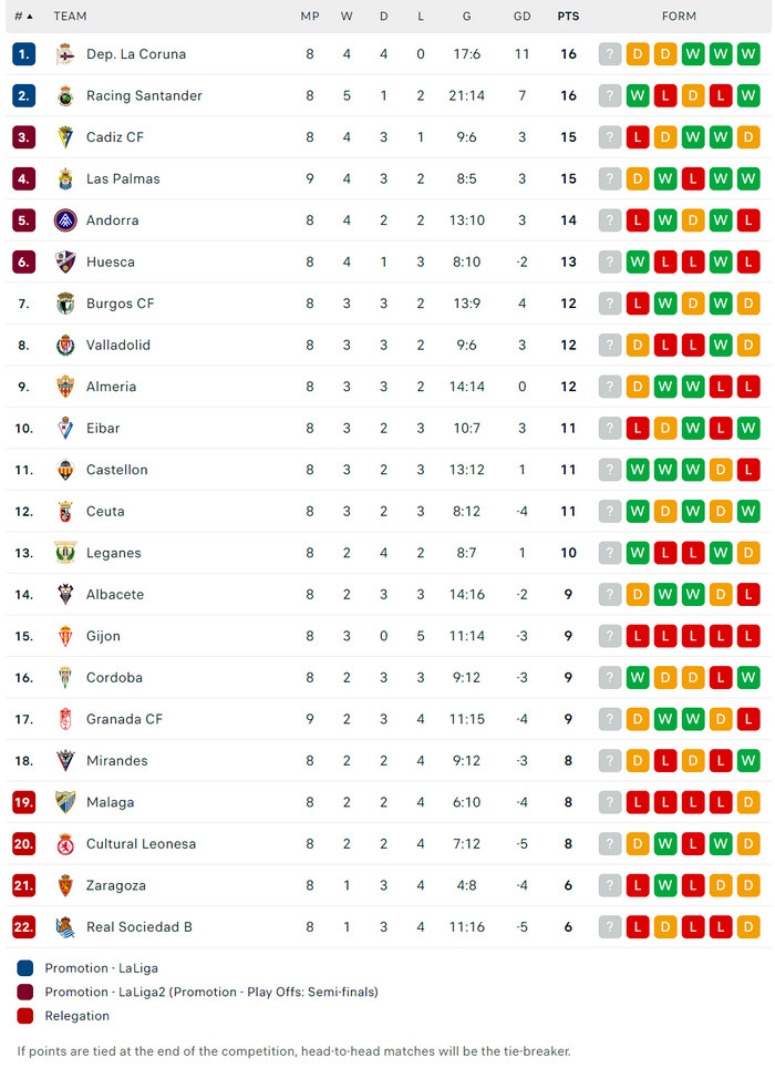21/09/25 แพ้ ลาส พัลมาส 0-1 (เหย้า) เซกุนด้า