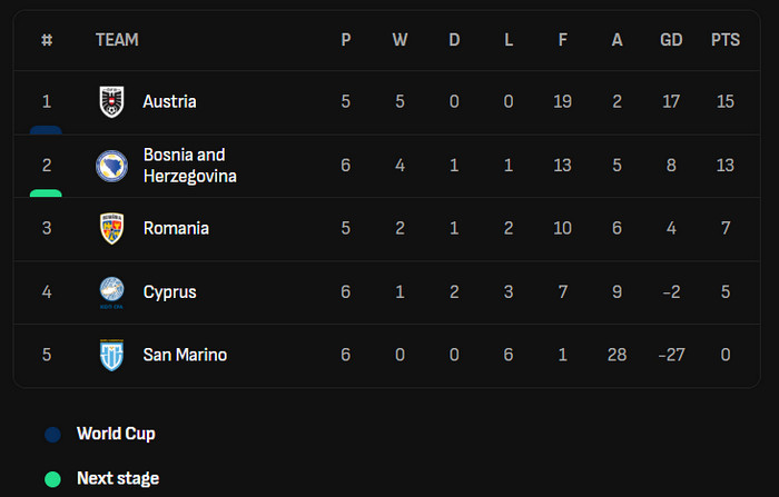 07/09/25 แพ้ ออสเตรีย 0-1 (เยือน) คัดบอลโลก 2026