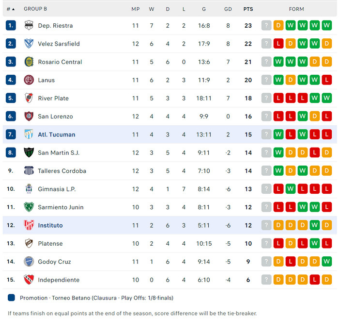 14/09/25 แพ้ บานฟิลด์ 0-1 (เหย้า) ลีก้า โปรเฟซิโอนัล