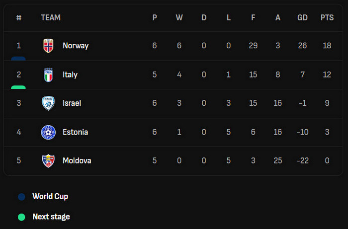 11/10/25 แพ้ นอร์เวย์ 0-5 (เยือน) คัดบอลโลก 2026