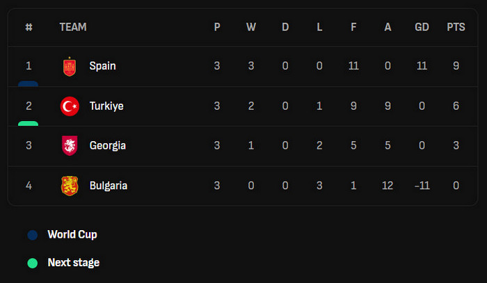 12/10/25 แพ้ สเปน 0-2 (เยือน) คัดบอลโลก 2026