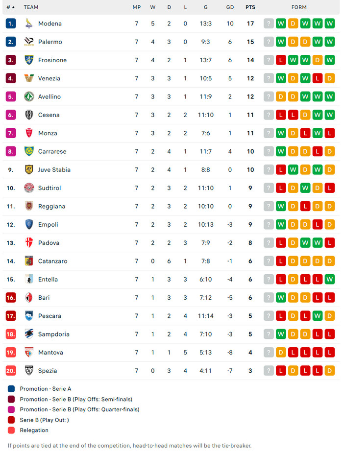 14/09/25 ชนะ มานโตวา 1-0 (เหย้า) เซเรีย บี