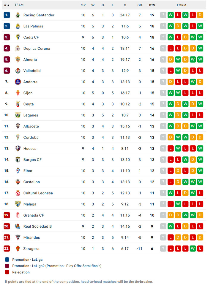 06/10/25 แพ้ ลาส พัลมาส 0-1 (เยือน) เซกุนด้า