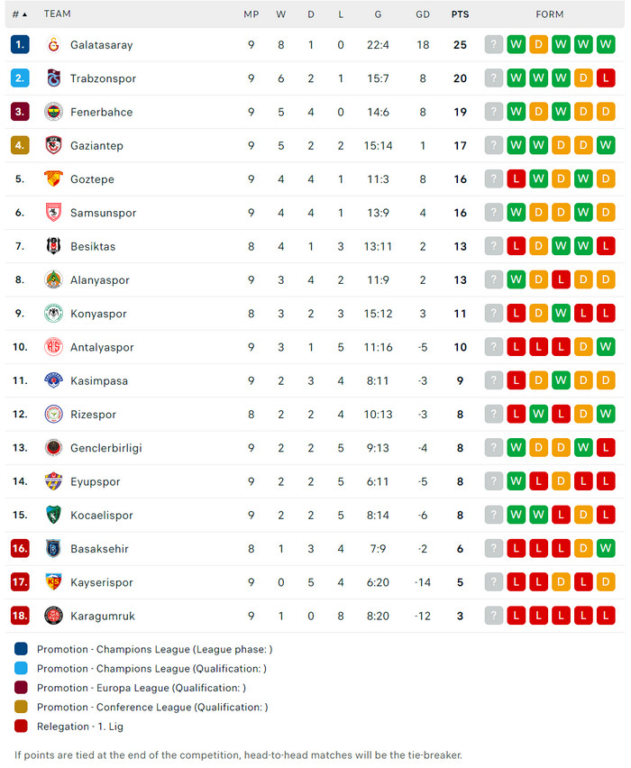 18/10/25 แพ้ เกนเคลอร์บิลิจี้ 1-2 (เหย้า) ตุรกี ซูเปอร์ลีก